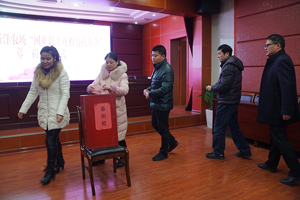 為建立健全扶貧幫困工作長效機(jī)制,弘揚團(tuán)結(jié)友愛、互幫互助的傳統(tǒng)美德,1月2日,新洋農(nóng)場舉行2018年“困難職工互相幫扶基金”募捐儀式。場領(lǐng)導(dǎo)陳守軍、潘元海、戴學(xué)林、王煜明出席,機(jī)關(guān)全體工作人員參加了儀式。