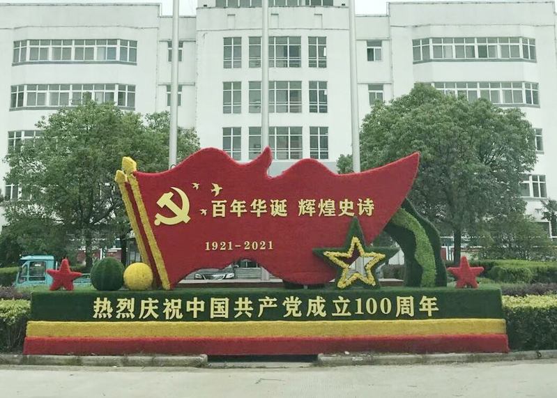 早在5月份,一組熱烈慶祝中國共產(chǎn)黨成立100周年的綠雕就將辦公樓前的花壇裝點(diǎn)一新。根據(jù)慶祝建黨100周年氛圍營造方案,近期,施工人員抓緊對(duì)350省道小城鎮(zhèn)段、裕源大道、建場(chǎng)路的燈桿上安裝印有“中國夢(mèng)”字樣的中國結(jié)景觀燈,同時(shí)穿插“不忘初心,牢記使命”、“砥礪奮進(jìn),追夢(mèng)前行”、“聽黨話,跟黨走”以及企業(yè)精神的道旗和宣傳標(biāo)語等,營造出一派紅色、熱烈、喜慶、向上的濃厚氛圍。