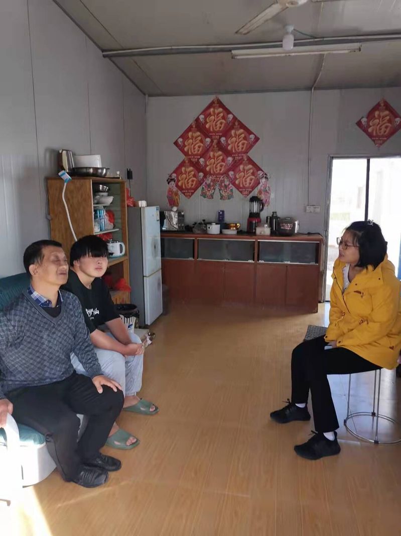 她出月子后,于10月17日帶著慰問金、大米、食用油等和李書記一起來到虞道虎家探望。通過深入交流了解到,他媽媽是外地人,在他4歲的時候拋下他就再也沒有回來,他爸爸身體殘疾又患有糖尿病伴隨著并發(fā)癥,致使視力嚴重下降模糊看不清,原先還能靠開三輪車帶乘客掙點微薄的生活費,現(xiàn)如今也只能作罷,面對如此不堪重負的家庭生活和上學的雙重壓力,家庭收入幾乎為零,經(jīng)過村、鎮(zhèn)的申請,縣政府相關(guān)部門的審批,最終他爸爸獲得了殘疾補貼和民政低保收入,家庭全部收入也僅限于此。“黨員媽媽”王靖與虞道虎的交談中,得知他本人對未來很有想法,目前就讀于揚州技師學院,五年制大專,數(shù)控專業(yè),他計劃好好學習順利畢業(yè)后將專轉(zhuǎn)本,繼續(xù)學歷深造以便日后好去蘇南就業(yè),考慮蘇南相對高工資可以為窮困的家庭和年邁的父親減輕壓力。聽此,王靖很欣慰,勸導(dǎo)父親和虞道虎,困難是有,但是暫時的,只要虞道虎肯努力學習,保持積極樂觀的心態(tài),未來一定可期。