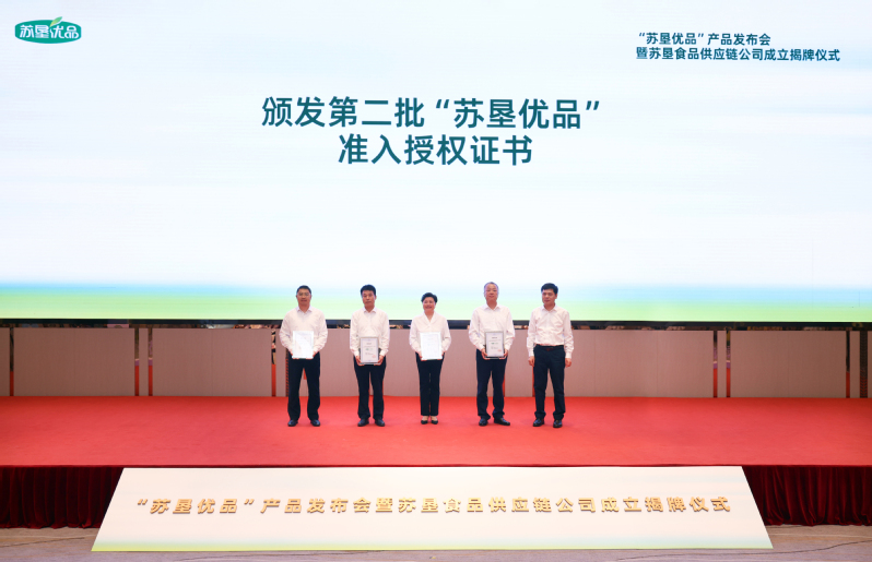 活動現(xiàn)場,吳本輝與中山大廈負責(zé)人共同為蘇墾食品供應(yīng)鏈公司成立揭牌。朱浩為第二批“蘇墾優(yōu)品”生產(chǎn)單位頒發(fā)授權(quán)證書。王立新在致辭中系統(tǒng)闡述了“蘇墾優(yōu)品”產(chǎn)品的價值定位、市場定位和質(zhì)量保障體系,并介紹了蘇墾食品供應(yīng)鏈公司的組建背景與發(fā)展愿景。
