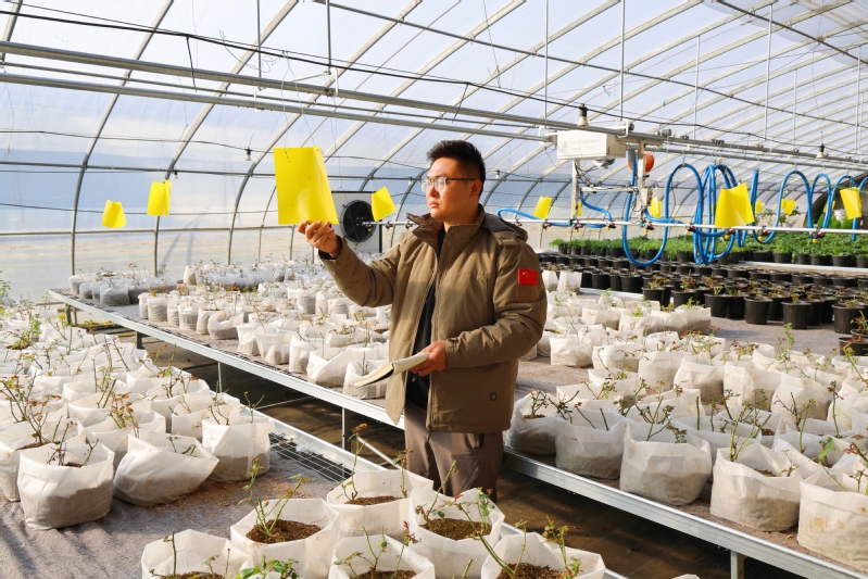 12月9日,江蘇農(nóng)墾崗埠農(nóng)場的科技育苗大棚,工作人員對今年新引進栽植的盆栽月季、玫瑰花苗精準修剪花苗的枯枝、弱枝,查看病蟲害發(fā)生情況,助力盆栽花苗平穩(wěn)過冬。